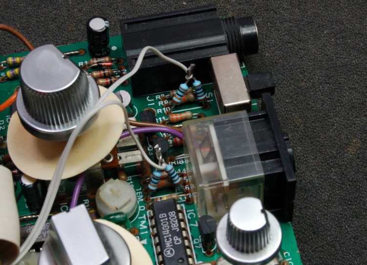 The junctions between the two new pairs of resistors are used as connection points for the MIDIBass sync signals.