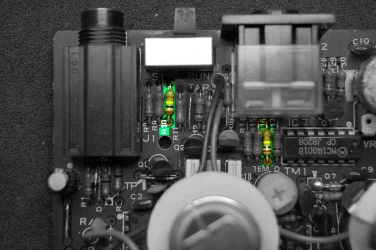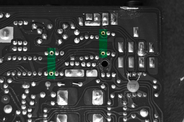 Resistors R10 and R16 must be removed. They are found in the top left corner of the main PCB: