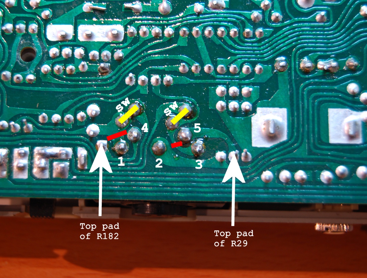 MIDI IN pin 4 goes to the R182 pad nearest the top edge of the PCB MIDI IN pin 5 goes to the R29 pad also nearest the top edge.