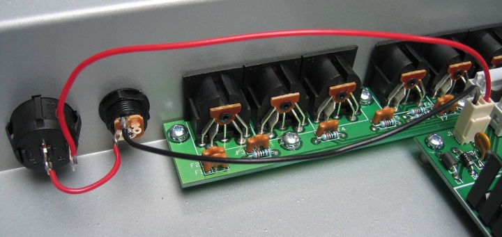 I use a 2.1mm connector for power input, wired for centre positive polarity. You can reverse the polarity to suit a different PSU if you wish. The switch can be wired to break either of the power supply connections to the main board - I tend to always wire it into the positive line.