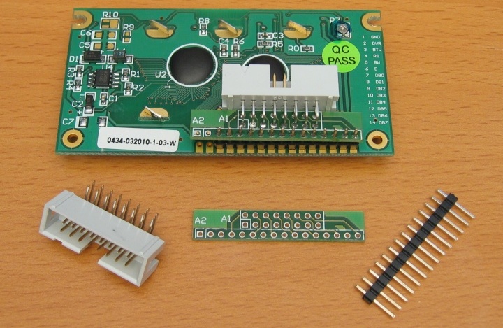 In order to simplify wiring of the display module, a small board is supplied that allows a 16 pin right-angled IDC connector to be fitted to the PLED module via a 16 pin PCB to PCB header: