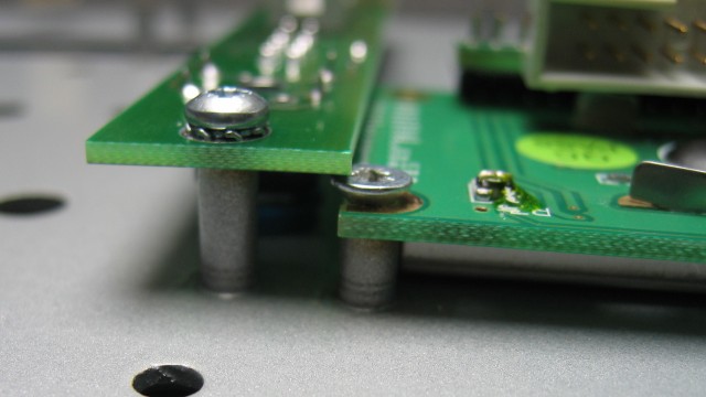 Note that a low profile or countersunk screw must be used to allow clearance for the function key board, which slightly overlaps the display module: