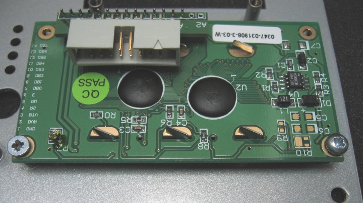 In order to simplify wiring of the display module, a small board is supplied that allows a 16 pin right-angled IDC connector to be fitted to the PLED module via a 16 pin PCB to PCB header:
