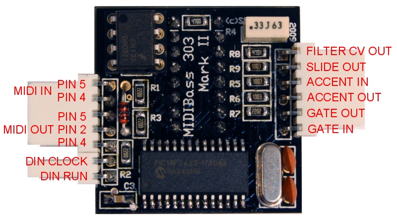 - addition of a capacitor (to fix a sync bug present in the original 303 CPU that only becomes apparent when you generate MIDI clock from its internal timebase)