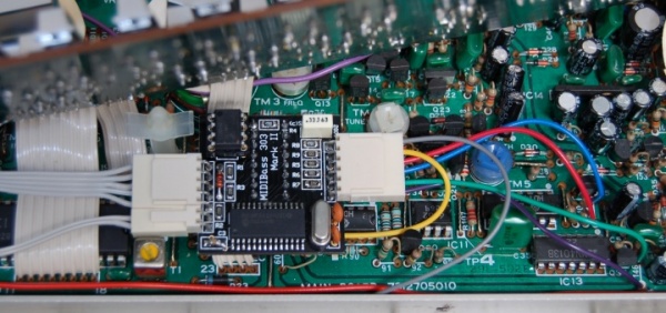 Some of the other ribbon cables may need to have their positions adjusted slightly to make room for the MIDIBass wiring.
